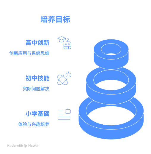 在具体教学设计上,《指南》提出构建“知识—技能—思维—价值观”四位一体的人工智能核心素养框架:学生不仅要掌握AI的基本原理和工具使用能力,更应具备计算思维、系统思维和科技伦理意识。通过螺旋式课程设计,引导学生在不同学段逐步实现从兴趣启蒙到创新实践的素养成长路径:小学注重激发兴趣和基础认知,初中侧重掌握技术逻辑和初步应用,高中则聚焦系统思维与跨学科创新。
