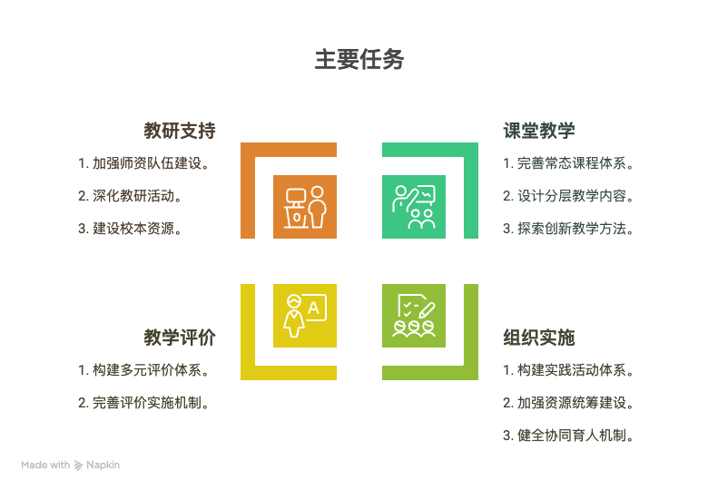 在课程实施方面,指南倡导“课堂教学,组织实施,教学评价,教研支持”四融合策略,推动AI教育深度融入各学科教学之中。强调人工智能通识教育不能成为“独立附加项”,而应深度融入日常教学,真正成为学科融合、素养导向的育人内容。这四个环节环环相扣、互为支撑,共同构建起AI课程从设计、实施到反馈优化的闭环体系,也为实现人工智能教育“常态化、学科化、高质量化”提供了明确路径。